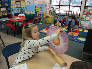 Some of our other centers this week were making our fancy flamingo calendars for February, cutting hearts for our placemats, counting sets, magnet letters and word builders, and the return of kitchen center (our igloo went away for the winter). If we had some free time after finishing our center job, it was always fun to head over to the red table and make some colorful patchwork patterns or elephants with friends!