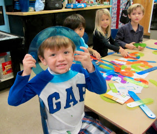 We had a rainy day this week, and missed our playground time. But, no one was sad about it! We learned a new musical game to play. All around the table were stockings with letters on them. We walked around the table while the music was playing, and sat down quickly when it stopped. Ms. Heather called out a letter, and we all checked if our chair had the match. If so, we got a candy cane to take home!